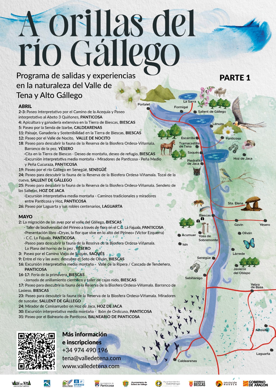 Este programa, que se desarrolla entre los meses de abril y noviembre, recorre el curso del río Gállego de norte a sur, acercando al visitante a la flora, la fauna, los paisajes y las tradiciones del territorio. Paseos interpretativos, observación de aves, rutas botánicas y encuentros con animales forman parte de esta propuesta.