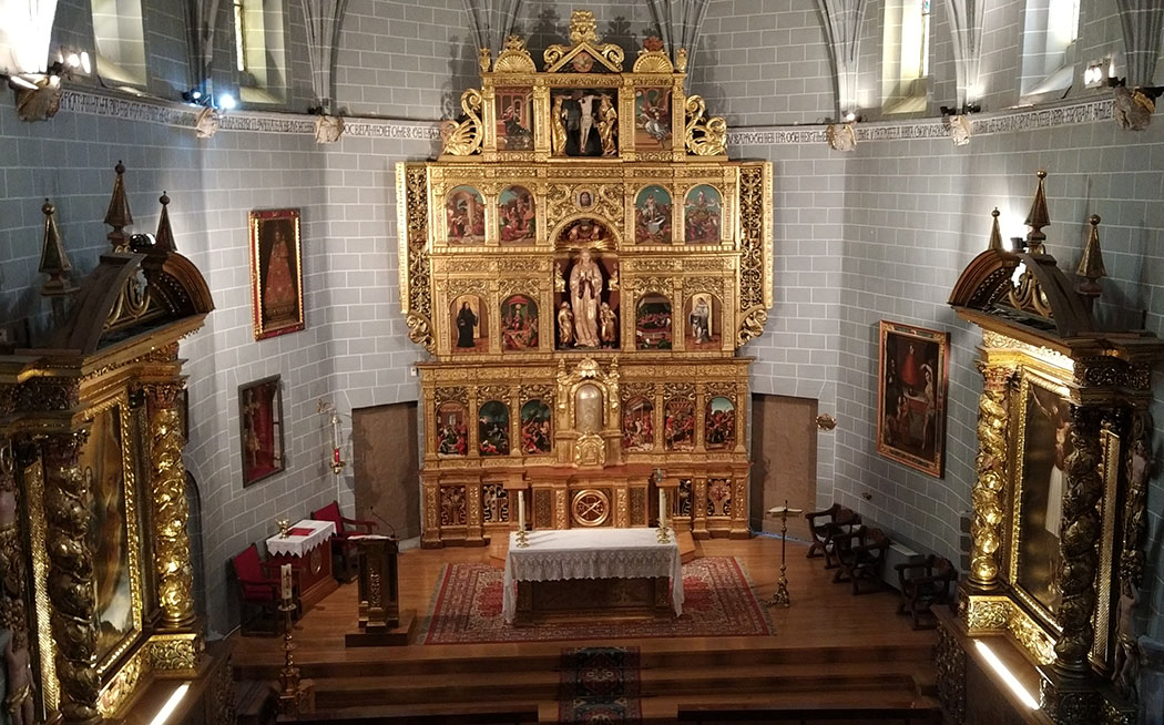 Sur le mur de droite se trouve une chapelle gothique du XVe siècle, la chapelle du Rosaire, où l'on trouve l'image de la Vierge des Neiges. Les chapiteaux de l'arc d'embouchure et les corbeaux qui soutiennent la voûte représentent des thèmes mythologiques (centaures, sirènes, oiseaux, anges), avec des détails très élaborés. Sur le mur de gauche, nous trouvons la chapelle de la Vierge du Pilar avec l'image de cette vierge, ainsi que celles de Saint Antoine, de la Vierge de Fatima et de la Vierge du Carmen.